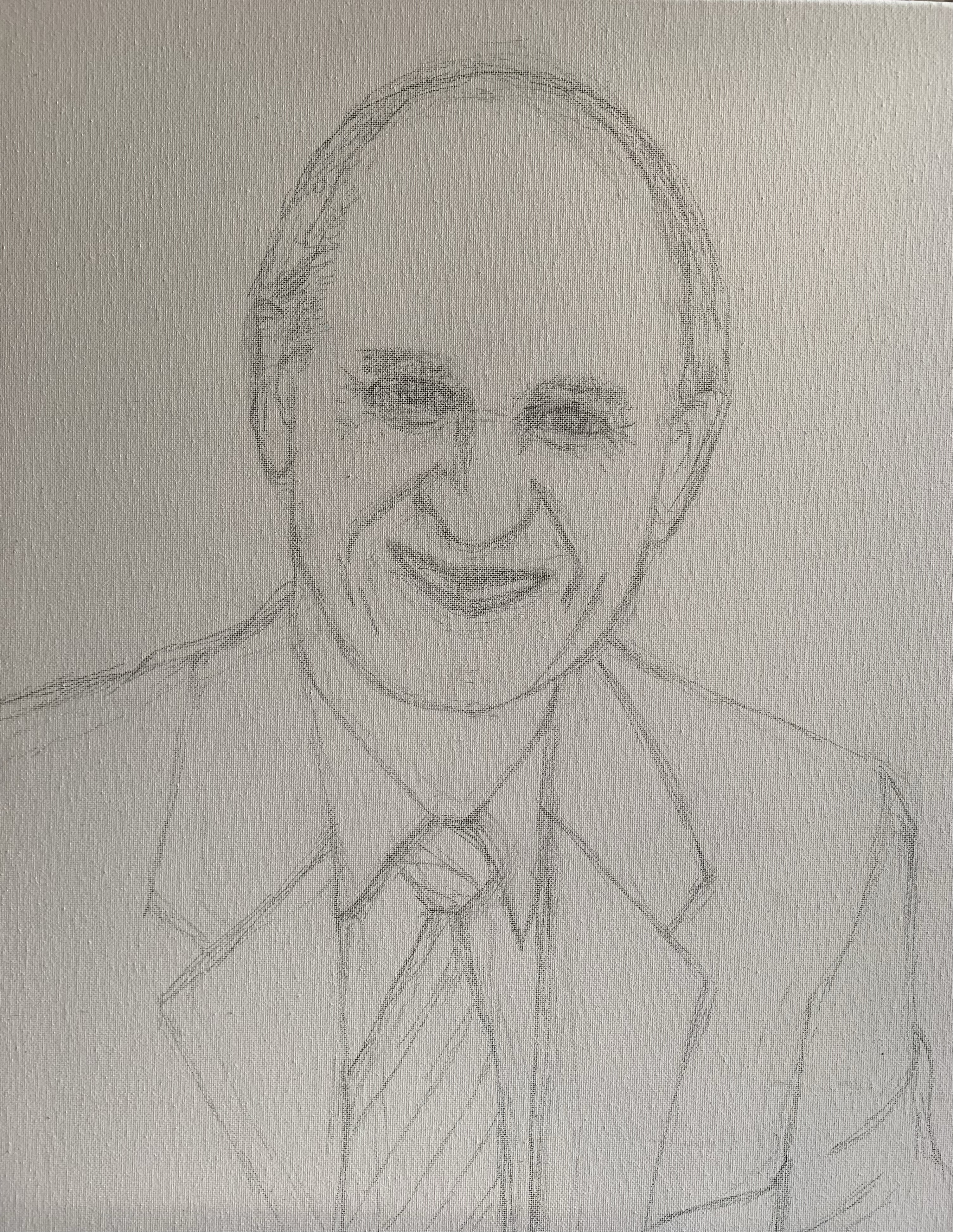 The drawing was done on July 15. The painting was done by 21 August but I made small revisions until 30 August. There was time for the paint and varnish to dry. We presented the gift to him on 14 September 2021.