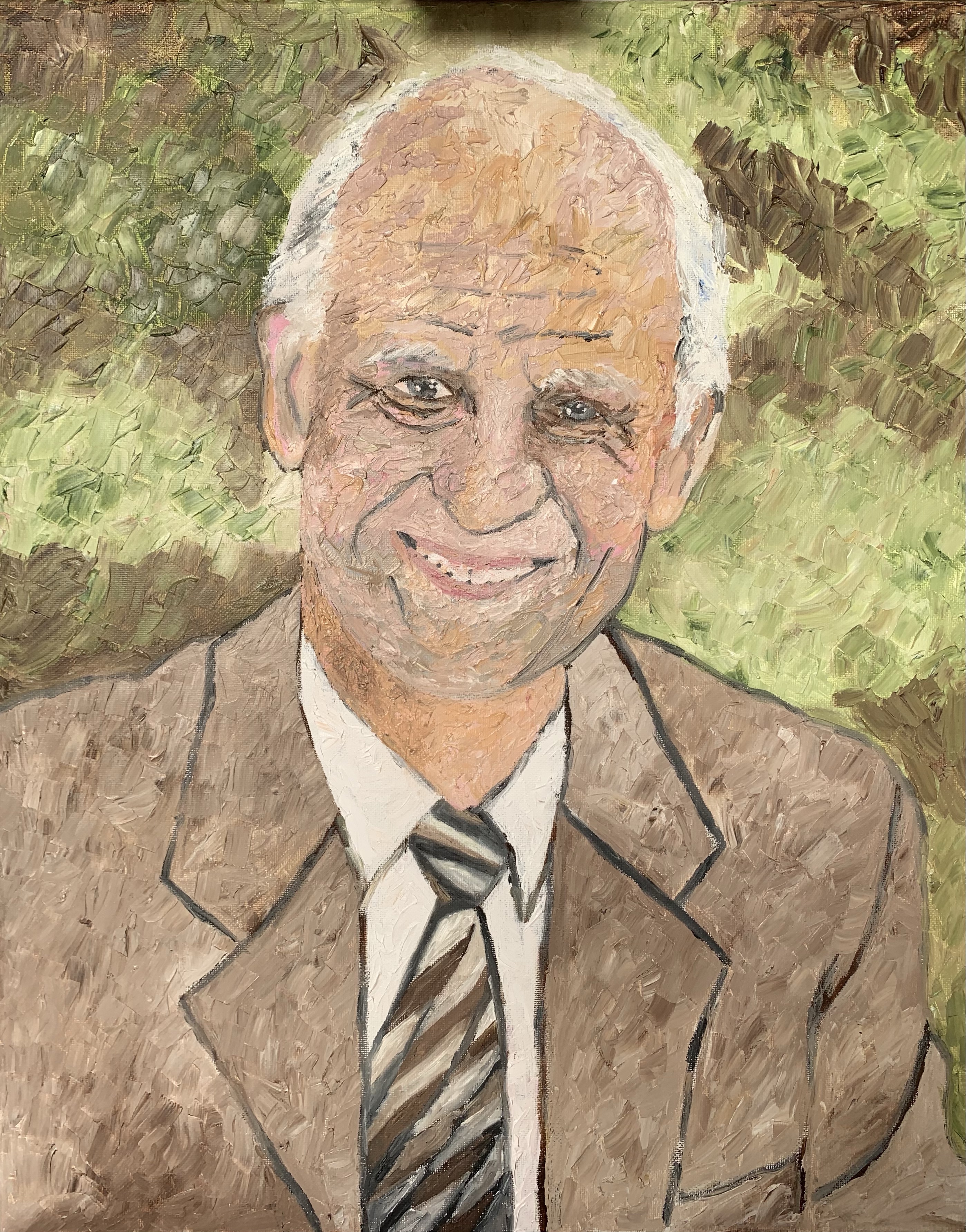 This is Jes Olesen, professor of neurology at Copenhagen University, and one of our senior mentors at the Danish Headache Center. This portrait was presented to him on his 80th birthday. It was the first time I had to talk about my painting to an audience. Whatever I said must have been barely organized. Still, it was an honor to be asked to paint this portrait. It was Rigmor’s idea. Colleagues pitched in for the gift, and the plan was to donate whatever we collected to Let’s Save The Brain Foundation at the Philippine General Hospital.