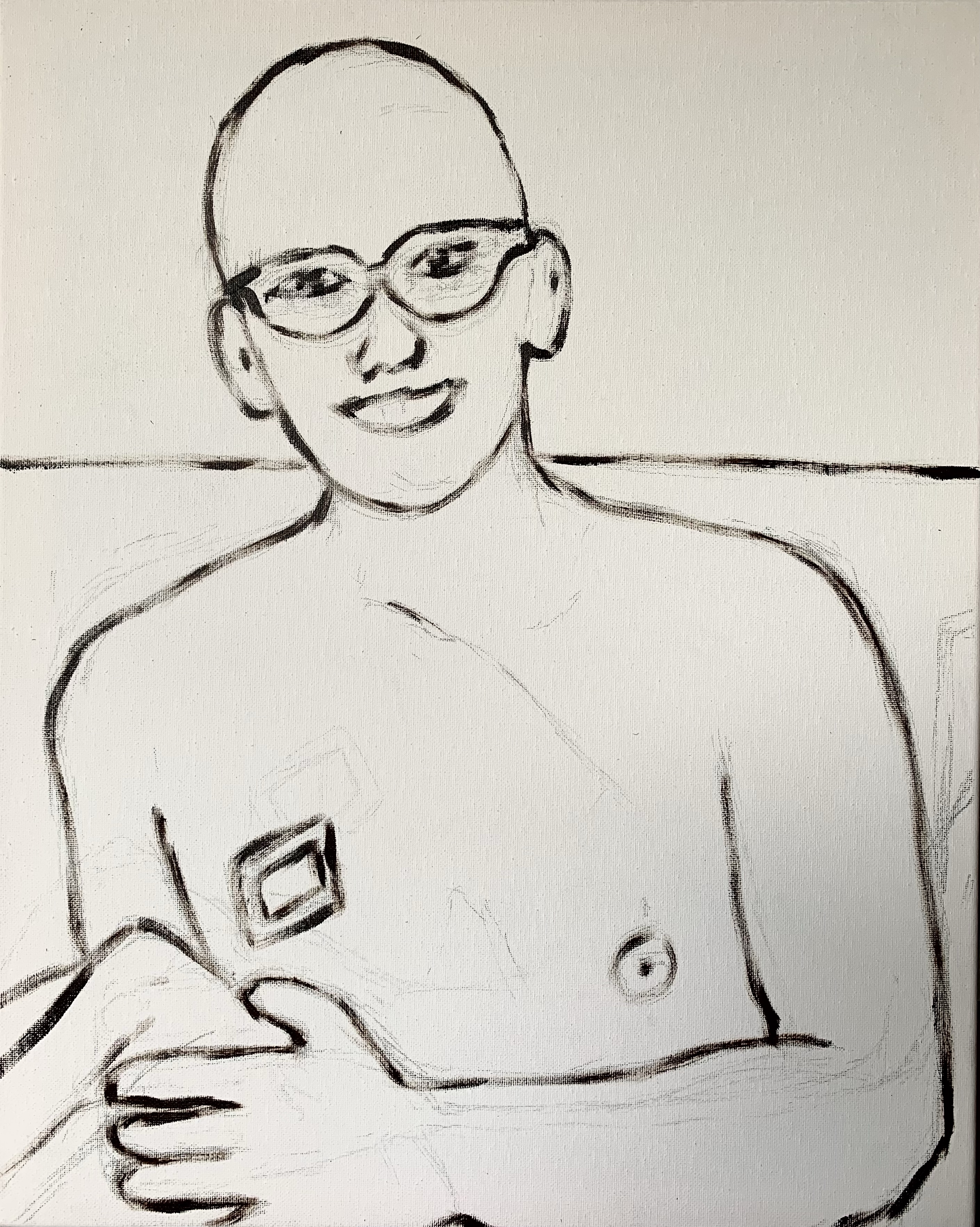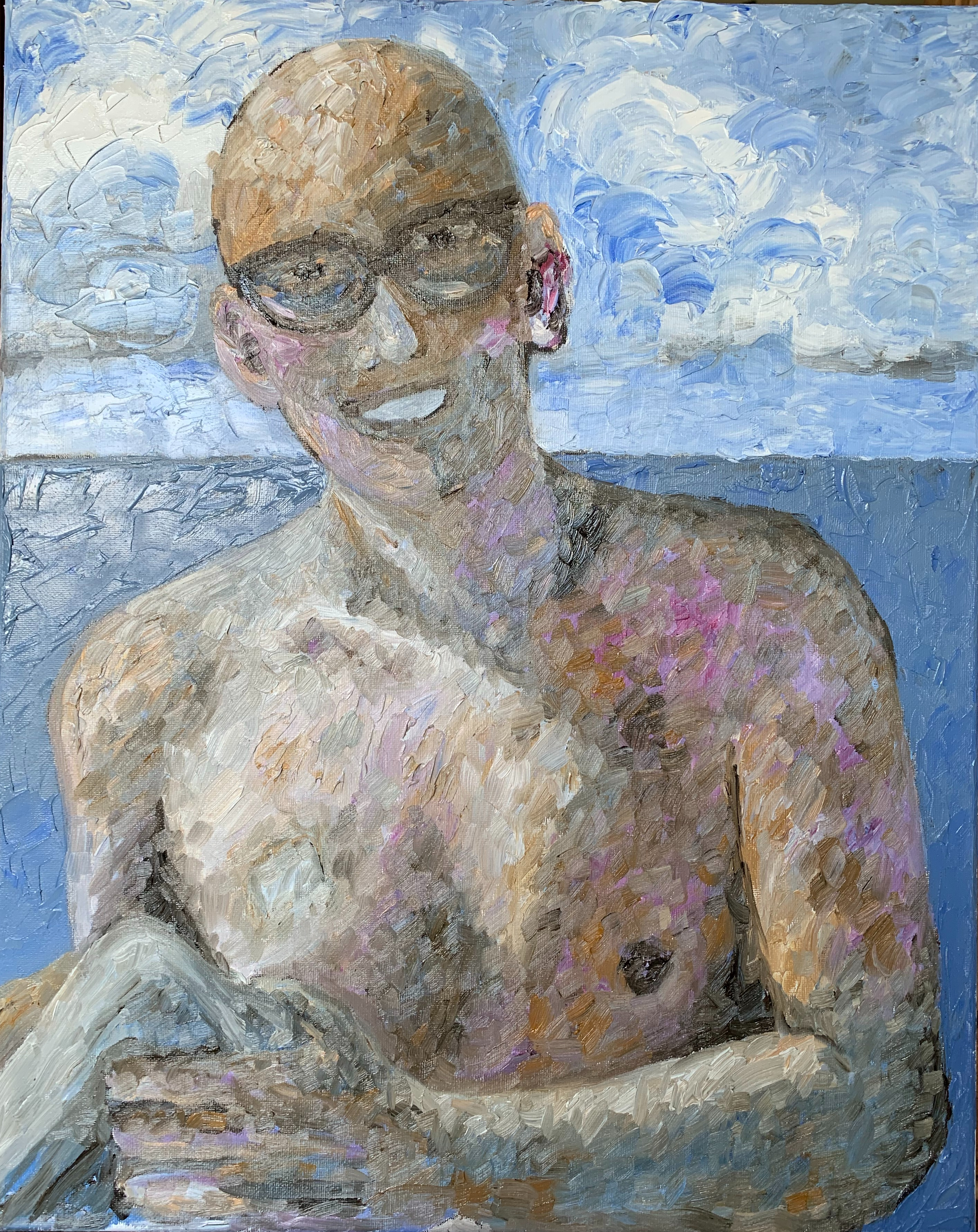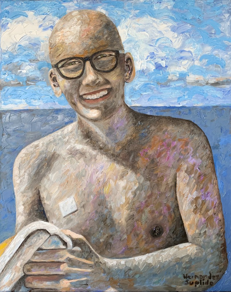 This is Simon, my colleague at work. The painting is titled “Port” not because he is standing by the water, but because of the bandage on his chest, which covers a port a cath.
