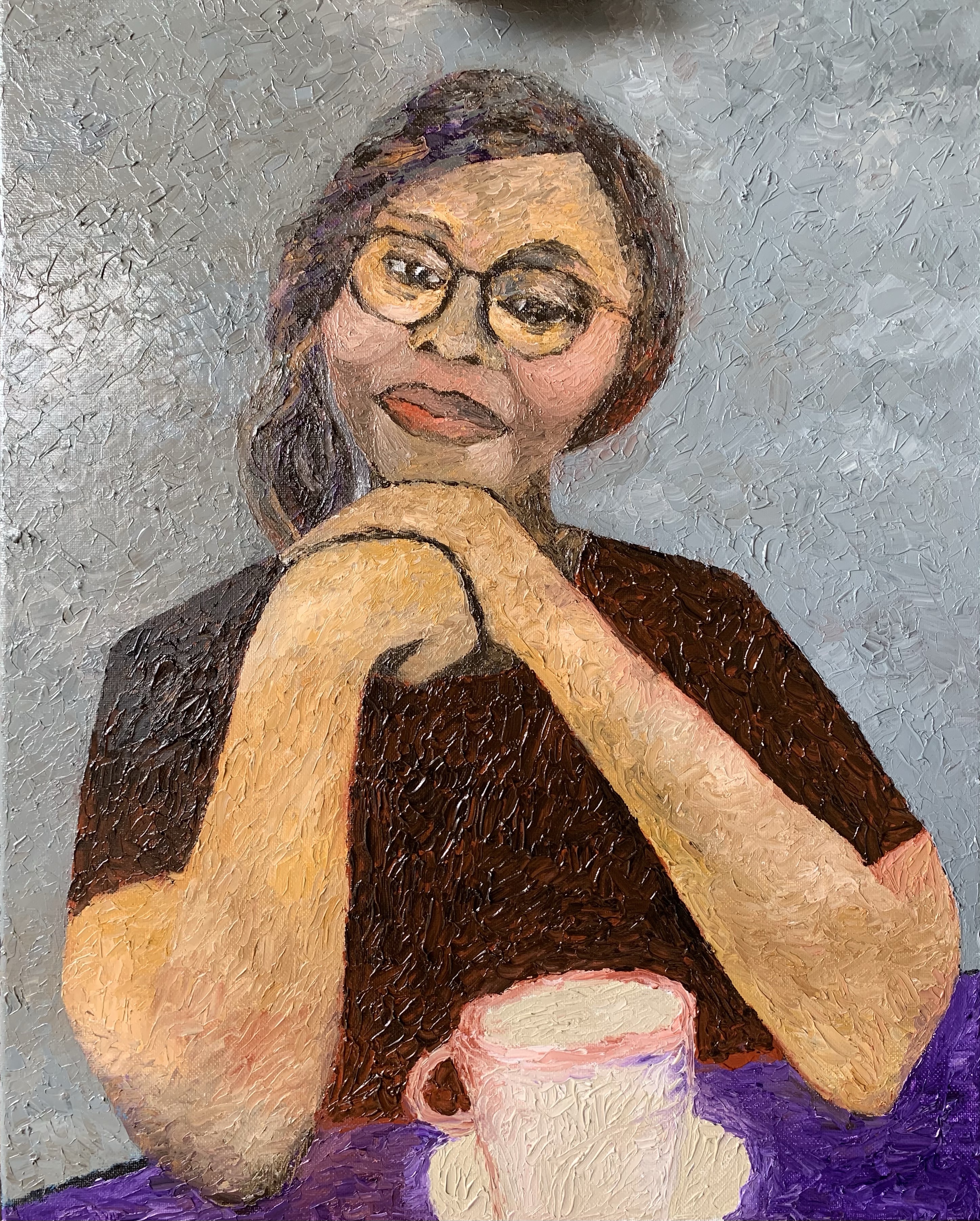 How someone from Pankshin, Plateau State in Nigeria could meet someone from the outskirts of Metro Manila and become friends in Copenhagen, is the subject of this painting of my friend, Joy. She helped me survive clinical work in neurology with a mixture of calm, humanism, and a constant desire to learn.